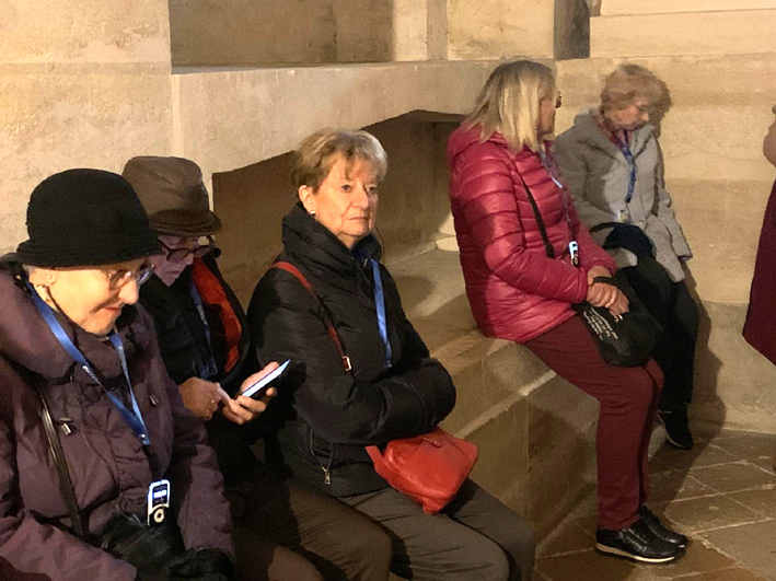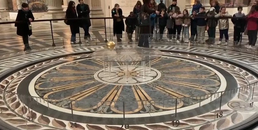Sous le dôme, le Pendule de Foucault retient toute notre attention en écoutant les explications de notre guide (3 à 5).
