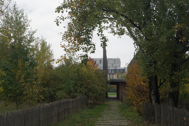 Nous traversons la Seine par le pont d'Asnières qui nous offre à l'ouest une vue brumeuse sur le quartier de la Défense (6).. La rue du Bac d'Asnières nous rappelle qu'avant le pont, il y avait là un bac. Elle croise la rue Gustave Eiffel et débouche sur le Parc des Impressionnistes (7), de création récente (2014). Nous en sortons par une allée très bucolique (8).