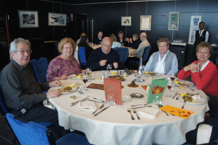 C'est la fête pour les amicalistes (10 à 15) : Terrines en entrée, darne de saumon et petits légumes en plat principal, tarte aux pommes en dessert. Boissons au choix et café ou thé.